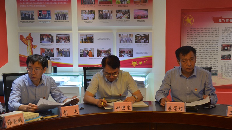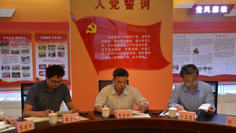 汇报结束后,指导组三位领导兵分两路,惠登科书记组织我校党委委员及支部书记进行了座谈交流,汪玉生主任及秦方刚老师分别检查了我校党史学习教育工作材料和党建工作材料,并反馈了检查结果和指导意见。