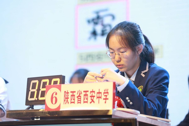 面对所在A组强手如林,名校咄咄紧逼的形势,我校参赛队四名选手,镇定自若。以接近满分的成绩率先A组出线,第二关继续领跑全场,第三关抢答保持全场第一的成绩跻身飞花令角逐。飞花令的竞争已达白热化。西中参赛队经过6分钟你来我往的诗句接龙,锁定前三。最后三支队伍同战飞花令,经过11分钟的比拼,西中学子击败所有对手,傲然夺冠!