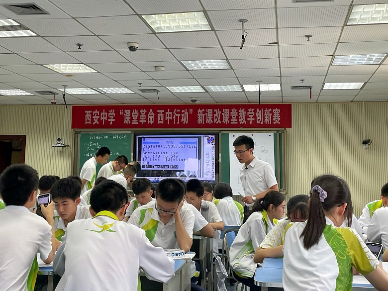 课堂上,教师们落实新课改要求,重视情境教学与问题导向,全面开展了自主式、合作式、探究式、互动式、项目化教学,以学生发展为主线,提高课堂教学设计质量,重视差异化教学和个别化指导,实现学生主动学习、积极提问、自主探究。参赛教师们改变传统的教育教学模式,综合运用现代信息技术手段,来实现课堂中的交互和学生学习情况的及时反馈,满足学生的学习需求。如利用鸿合多屏互动软件实时掌握学生的操作动态;利用卡西欧图形计算器进行作图和编程;利用智慧课堂平板电脑开展以“数据驱动”和“个性化”为核心的精准教学活动……