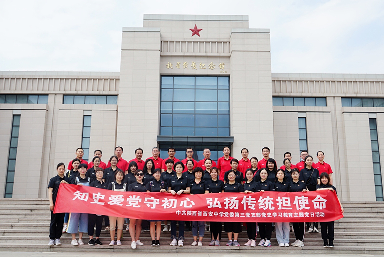 奋斗百年路,启航新征程,在中国共产党建党100周年荣光之际,陕西省西安中学第三党支部6月10日,11日赴眉县开展“知史爱党守初心,弘扬传统担使命”的主题党日活动。全体党员缅怀革命先烈,进行党性教育,持续推进党史学习教育走深走实。