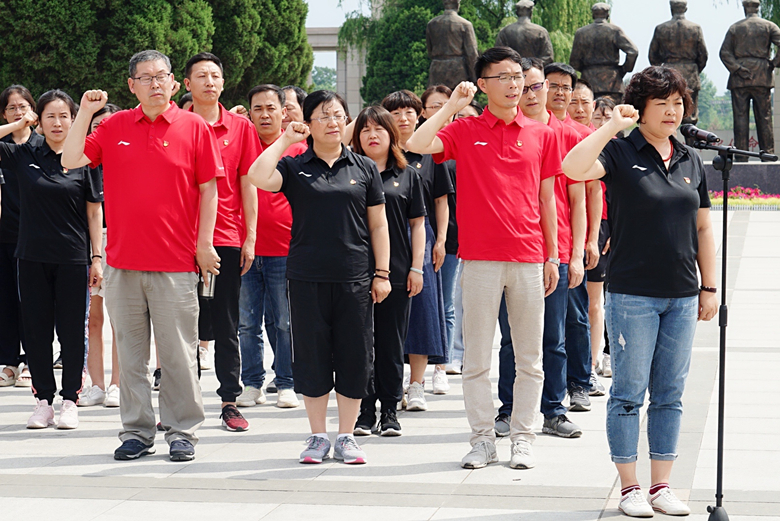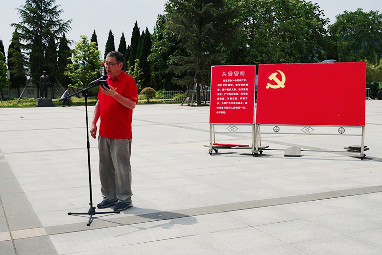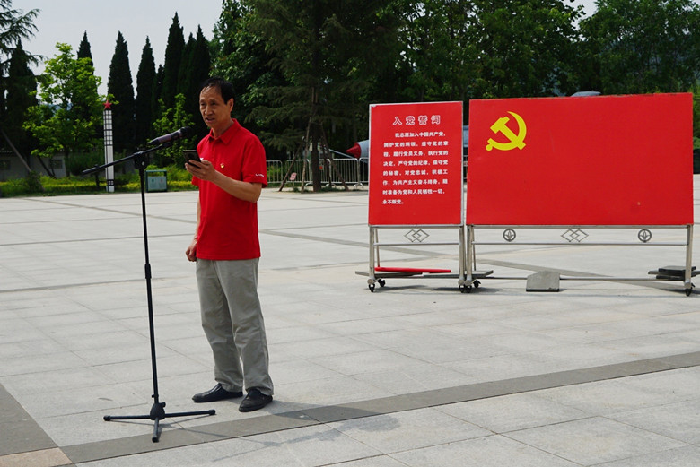 大家甫一抵达,就聚集在雄伟的纪念碑前,怀着无比崇敬的心情庄严肃立,鞠躬默哀。党员代表向扶眉战役革命烈士敬献花篮,杨毅主任,宋心茹主任整理绶带。骄阳下,每一名党员在扶眉战役纪烈士纪念碑前重温了入党誓词,铮铮誓言铭记于心。最后,第三党支部榜样老党员秦才玉老师,刘九诗老师为全体党员致词,两位老师都表示在这样的伟大的时代,我们更要珍惜现在的美好生活,并且树立远大的理想目标,担当党员的责任,将革命先烈的精神传承并且贯穿于我们的日常工作之中,不负使命。