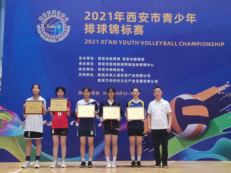 在刚刚结束的2021年西安市青少年排球锦标赛中,我校女排经过三天的比赛,以四战全胜且都是2:0的绝对优势夺得女子甲组(高中组)第一名的佳绩。
