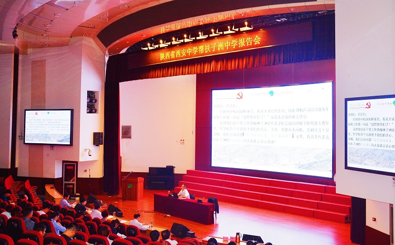 为贯彻落实习近平总书记在全国脱贫攻坚总结表彰大会上的讲话精神,大力弘扬脱贫攻坚精神,及时宣传身边的榜样事迹,助力我校教育帮扶工作更加稳步推进,6月17日下午,校党委特别举办教育帮扶工作主题报告会。西安中学副校长、子洲中学党总支书记、校长雷琪平同志为高一高二全体就教职工做精彩报告。会议由校党委副书记薛锋同志主持。