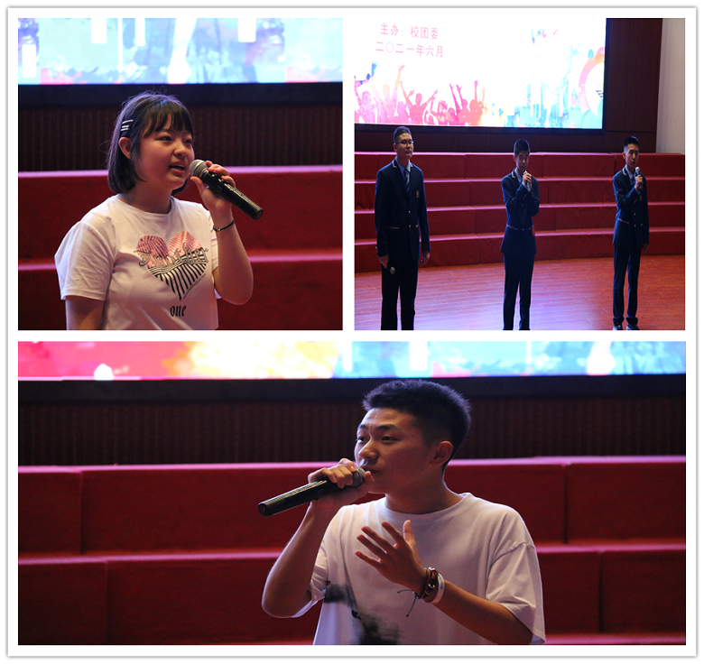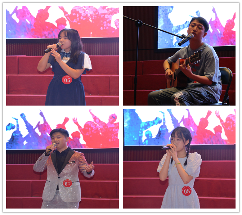 活动自5月中旬启动以来,历时一个多月,经过初赛、复赛的激烈比拼,共有15组选手晋级决赛。本次比赛分为“先声夺人”和“王牌对决”两个环节。在首轮比赛中选手们分别进行了精彩的个人独唱。1号选手白博文同学演唱的《思乡曲》拉开了本次比赛的序幕。4号选手李欣月同学演唱的《淋雨一直走》气场强大,动感十足,点燃了赛场的激情。7号选手马伟博演唱的《我和我的祖国》,抒发了青年学生与祖国同呼吸、与民族共命运、与时代共发展的壮志豪情。12号选手田欣阳、赵林炎、蒋思成组合演唱的《鹿be free》,扎实的唱功、流畅的配合以及动听的和声,赢得了现场观众的阵阵掌声与欢呼。最后,10号选手田崔奕阳同学的一首《我的名字》,点燃全场的热烈气氛。