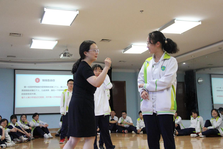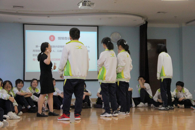 活动伊始,张毓珂老师以一个轻松的游戏“乌龟与乌鸦”将同学们代入较轻松的氛围,同学们在欢声笑语中,逐渐放松,将自己代入到活动中。此后是“大风吹与小风吹”的游戏,看似有趣的环节,引发了同学们对自己心态、性格的思考,在张老师的讲解下每个同学不由深思,并认识到自己在班级中并不孤单。下一个“悄悄告诉你”的环节,则揭示了在人际交往中我们每位同学都或多或少会遇到困难,听到不愉快的流言蜚语,但张老师鼓励同学们:“当听到‘与事实不符’、‘令人不快’的事,不如一笑而过,或直接沟通。”要以正确的态度对待可能存在的问题。在最后,老师选择了一名同学,让大家每人说出他的一个优点,然后他再说出每位同学的一个优点,在惊奇中,每个人仿佛找到不一样的自己,活动圆满落幕。