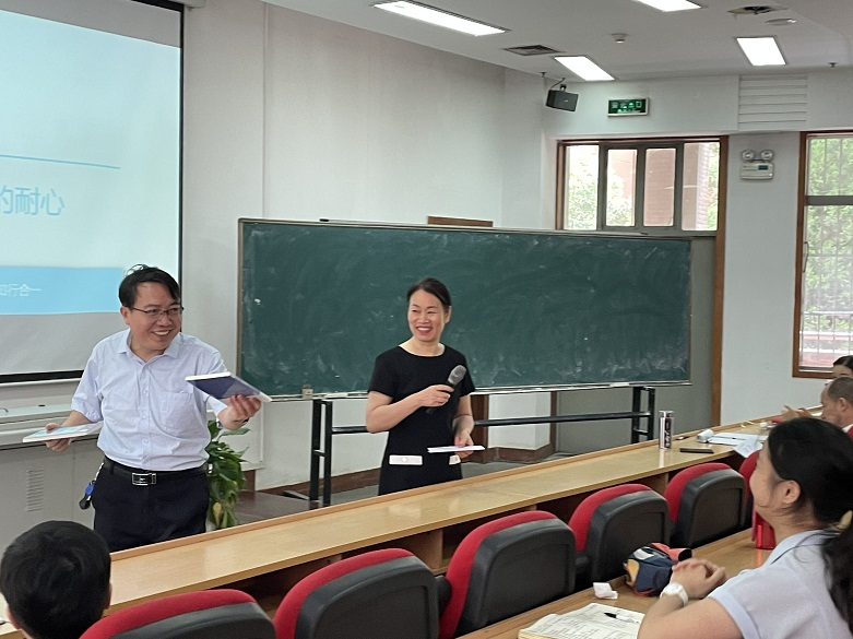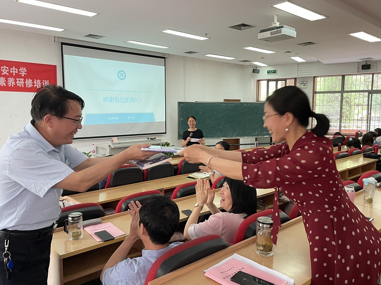“作为教师,一个肩膀挑着现在,一个肩膀挑着国家的未来。今日的教育质量关系到明日的国民素质,教师的责任大如天。”张教授引用人民教育家于漪老师的话,鼓励在场教师坚定信念、砥砺前行、无问西东,并向认真听取讲座的两位教师赠送了书籍。