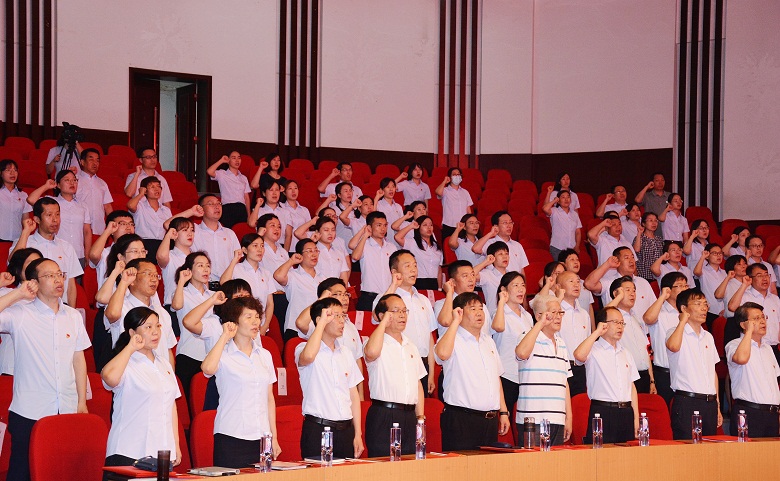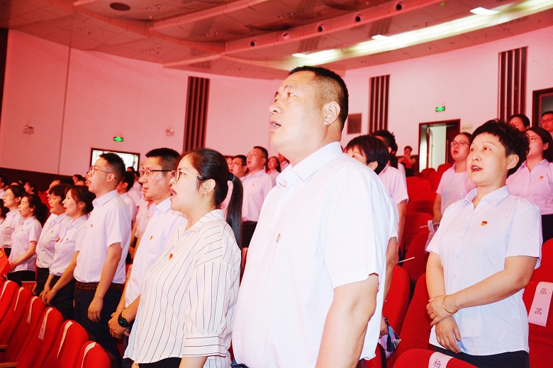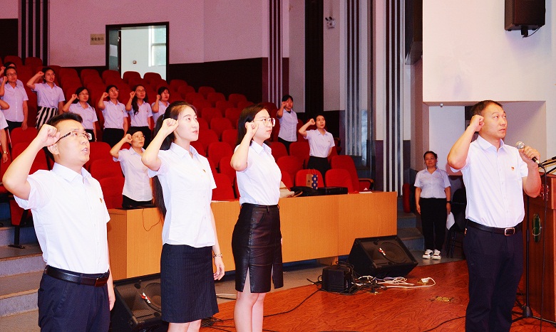 党委委员何海林同志宣读《对同意接收屈锋等同志为中共预备党员的批复》,并带领新加入党组织的屈锋等3名预备党员及全体党员教职工宣誓,重温入党誓言。