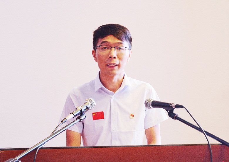 随后,党员代表邓先武老师发言,他以《做一朵奔腾的浪花》为题,讲述了自己在党的精神动力感召下,不断进步提升、取得各项成绩的成长历程,他号召全体青年党员要在校党委坚强有力的领导下,在先进思想的指导下,把理想信念植根于心灵深处,向着梦想的灯塔起航,书写不负自己、不负时代的人生答卷!在时代洪流中,翻涌奔腾出各自精彩的浪花。