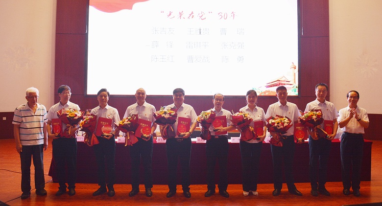 表彰环节,校党委委员薛党鹏同志、石峰虎同志、胡杰同志、郑宏宝同志和王燕同志分别宣读了《关于表彰先进党总支、先进党支部的决定》《关于颁发“光荣在党30年”荣誉证书的决定》《关于命名共产党员先锋示范岗的决定》《关于表彰优秀共产党员的决定》《关于表彰“我为学生导航”活动先进个人的决定》及《关于表彰党员读书活动先进个人》的决定。