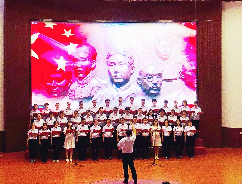 最后,第三支部带来精彩的节目展演。师生合唱《不忘初心》表达了共产党员奉献教育事业、担当育人使命的初心,师生快板《升国旗》铿锵有力,生动地展示了对国旗的尊敬和热爱,合唱《在灿烂的阳光下》旋律悠扬、意味深长,表达了对党生日的祝贺和无限热爱。