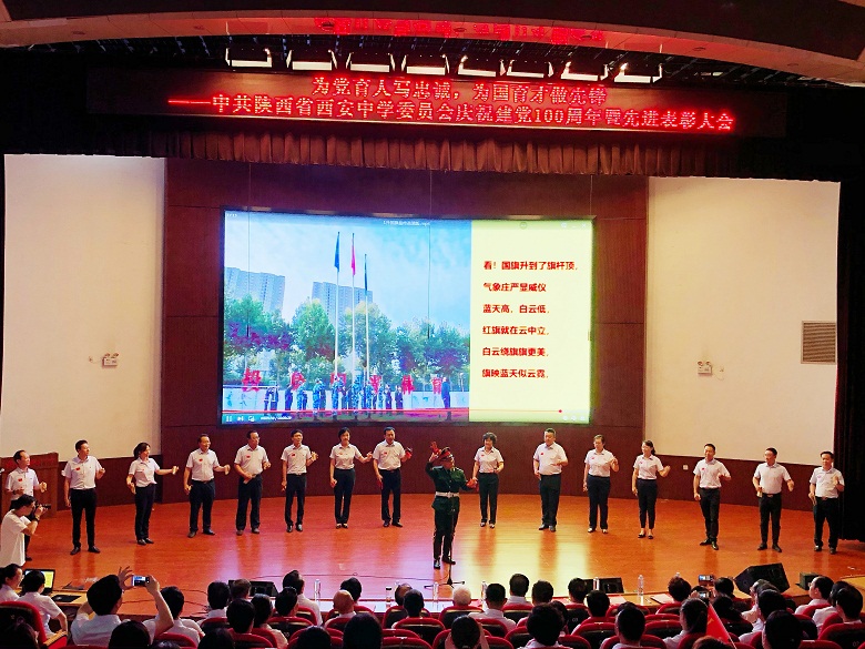 表彰大会在《国歌》声中拉开了帷幕。党委书记张克强同志致辞,他深情回顾了中国共产党百年来波澜壮阔的丰功伟绩,梳理了校党委近年来深入贯彻落实全面从严治党各项要求,不断强化抓党建主业意识和政治责任,坚持以党建引领教育教学工作的发展和成就。他要求全体党员要提高政治站位、主动担当作为,坚定理想信念、牢记初心使命,锤炼党性修养、坚持守正创新,以更加昂扬的斗志、更加饱满的热情、更加务实的干劲,奋力谱写西安中学新时代追赶超越新篇章!