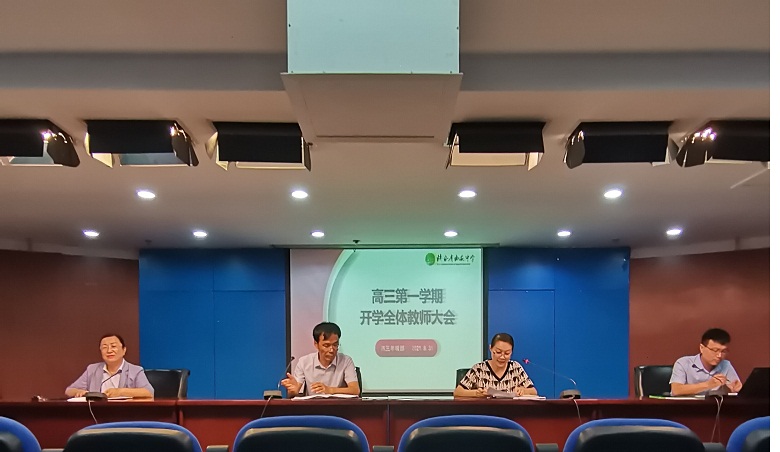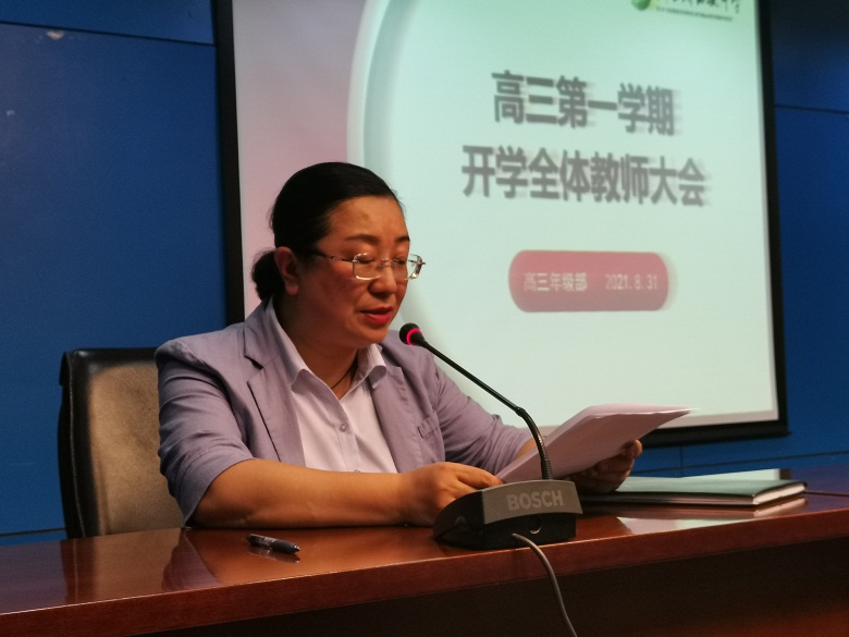 大会首先由年级部郑欣副主任代表年级部就暑期工作进行简要总结并对本学期的主要教学工作做出安排。他指出在薛校长和学校复习备考工作领导小组的坚强领导下,高三年级全体师生克服高温、疫情等不利因素的影响,出色、圆满地完成了既定的备考计划。此外,郑主任对本学期主要教学活动和备考活动进行了合理规划和详细说明,并对重点工作进行了提醒。