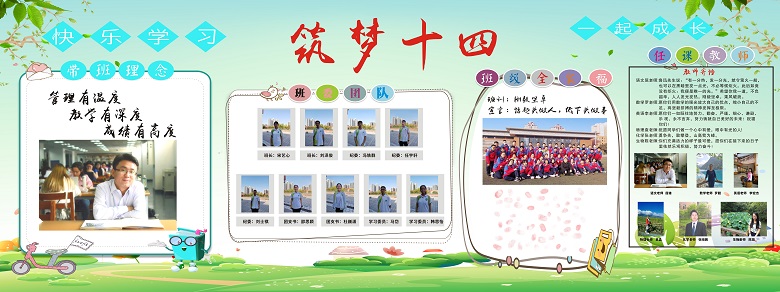 带班理念:1. 严格的教学, 辅以爱心和热情;2. 不要为失败找借口,要为成功找原因;3. 习惯决定成就, 细节决定命运;4. 真心对待学生,打造团结共进的和谐级;5. 最好的节约是珍借时间,最大的浪费是虚度年华。