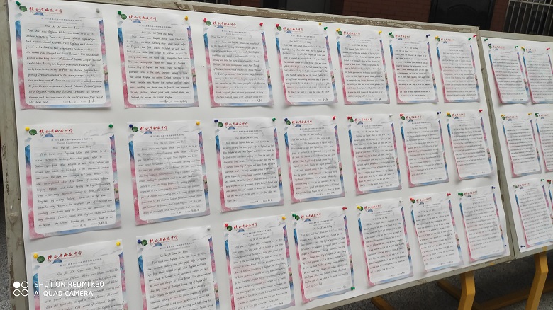 此次比赛抄写内容为必修五第二单元The United Kingdom Reading部分第二段How the UK Came into Being。为了体现公平原则,全年级一千多名同学全员参与。同学们态度认真,抄写过程秩序井然,学习氛围浓厚。随后,各位任课老师挑出本班七份优秀作品于校园内展示。所选作品字迹工整美观,书写流畅端正,卷面整洁漂亮,令人赏心悦目。它们既展示了西中学子的风采,又彰显了英语书法艺术之美。同学们课余时间在展板前欣赏着同伴们的优秀作品,兴趣盎然。
