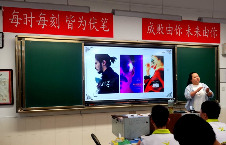 孟萌老师:亚昕的课能充分调动学生,课堂气氛活跃。让学生根据对原文的理解创作宣传海报,在创作活动中学生已经融入了对文本内容的理解,包括对小说所有人物的形象分析,人物关系的理解,小说主旨的解读等。