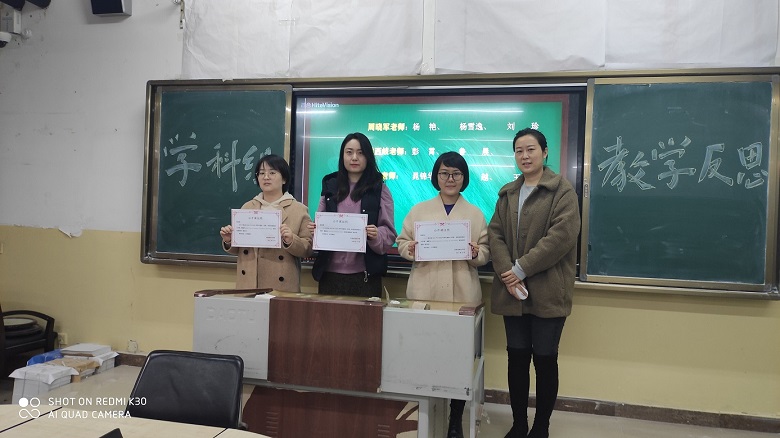 首先,杨宁老师带领大家学习了省厅发布的《关于开展陕西省中小学“课堂革命,陕西行动”活动通知》的文件精神,强调“课堂革命”是对课堂深刻而富有颠覆性的认识和重构,既是“学科课堂”更是“育人课堂”,既是“传统课堂”更是“互联网+课堂”。教师应关注每一个学生发展的差异化,创设以学生为中心、以课程为中心、以学习为中心的新型课堂,创设技术赋能的E时代课堂。紧接着,杨宁老师带领大家回顾了本次的课堂展示活动,赞赏英语组青年教师参与活动的主动性和积极性,以及所表现出的端正的教学态度,扎实的专业素养和日益成熟的业务能力,并为此次参与活动的青年教师颁发证书,作为鼓励。