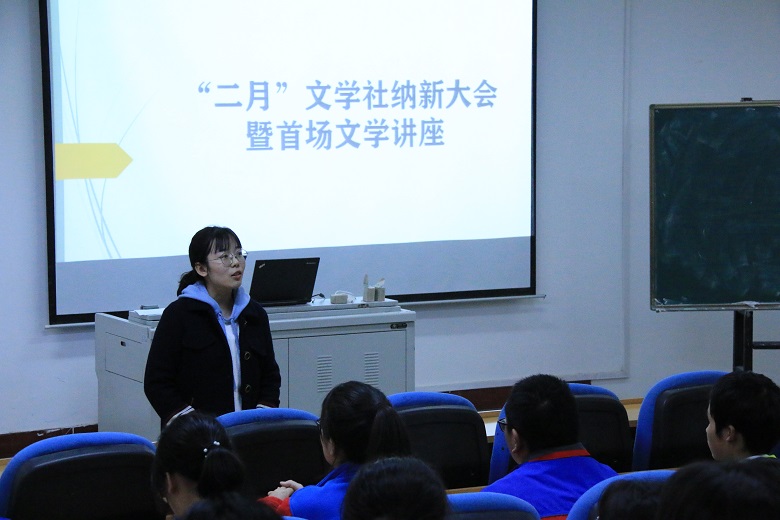 为响应“课堂革命”,打造“第二课堂”,进一步丰富校园文化生活,激发社团活力,发挥社团影响力,擦亮“二月”文学讲座品牌,为我校文学爱好者提供学习、展示、交流的平台,11月2日,“二月”文学社在图书馆一层报告厅(2)举办纳新大会暨首场文学讲座。