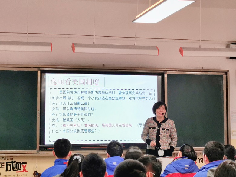 南向红老师用层层递进的三组美国总统的逸闻,四两拨千斤将学生从现实带入了对美国政体的思考中。在美国“新体制的尝试”“新体制的确立”“新体制的巩固和发展”的线索推动下,通过《五月号公约》《独立宣言》《邦联条例》《1787年宪法》等系列文件的精神引领、麦迪逊、华盛顿、富兰克林等人物的刻画,清晰的逻辑、开阔的视野、准确的知识、详实的细节、深刻的思考一应俱全,无论是学生还是听课教师都“听君一堂课,如身临其境,又满载而归”。