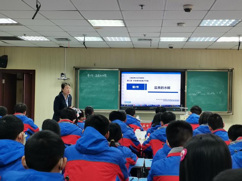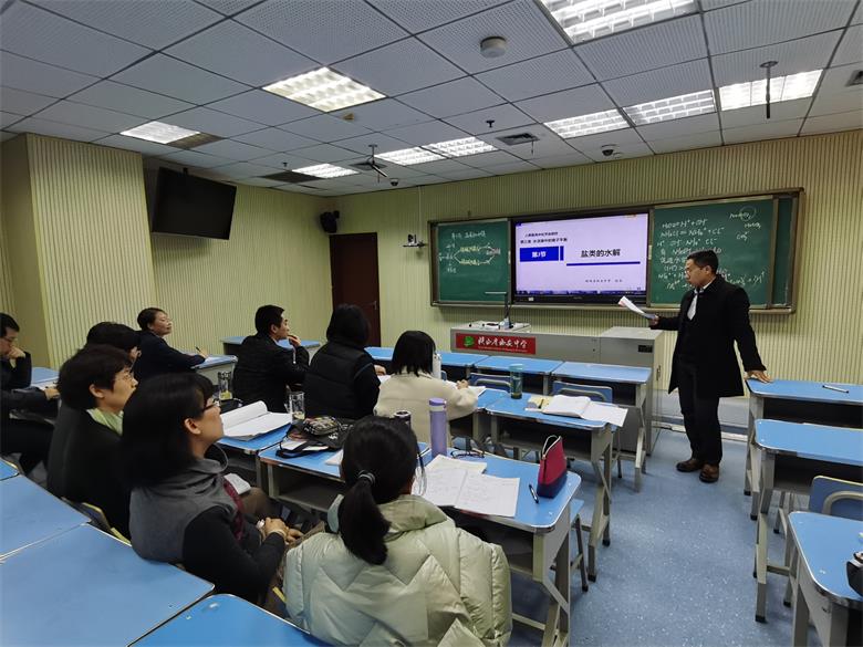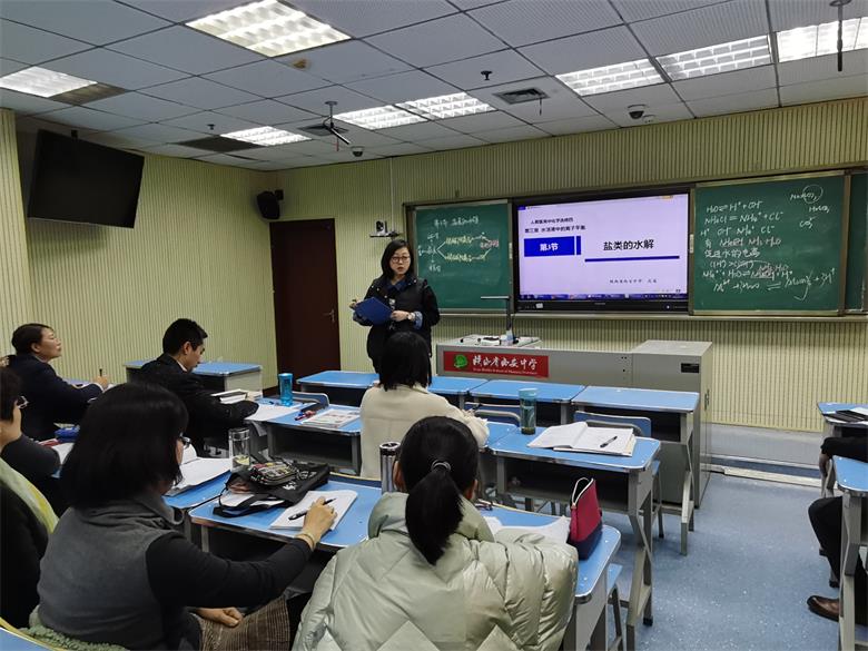 高效课堂是每一个教师与学校共同追求的目标,这样的课堂不仅教学质量高,学生学得轻松,更为学生的后续发展做好了准备。协同备课、协同听评课是提升课堂效率一个较为有效的办法,通过多校协同等方式,可以更好地共享观点、凝聚智慧,在提升教师素养的同时,还促使课堂生成得更精彩,实现教与学的共生共长。基于此,我校化学学科组于2021年11月23日下午联合经开一中、经开三中、泾河一中、子洲中学、西外附中等学校的化学学科组,共同听取高苗老师的一节示范课——《盐类的水解》,并进行了相关的评课活动。