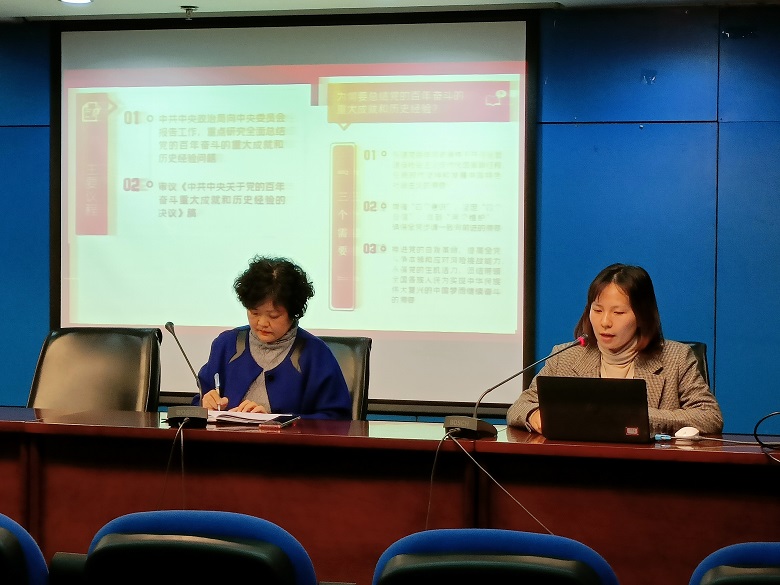 11月30日下午,第三党支部召开全体党员大会,集体学习十九届六中全会精神。大会由支部副书记苟莉莉同志主持。