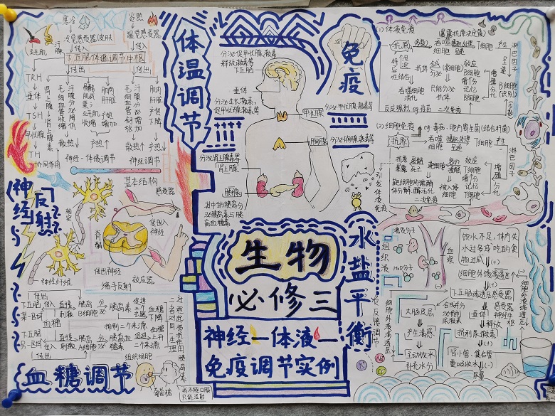 为了践行《普通高中生物学课程标准》(2020修订版)中“内容聚焦大概念、教学过程重实践”的基本理念,加深学生对生物学概念的理解,提升应用知识的能力,让学生参与到动手动脑的实践中,11月13日-12月1日,高2023届年级部协同高二生物备课组在全年级组织开展了一次“绘制必修三1-3章生物概念图”的实践活动。