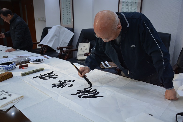 书画作为中华优秀传统文化的重要载体,陕西省传统文化发展促进会的书画艺术家们,肖云儒、屈应超、宋亚平、李艳秋、吴福春、朱思明、康晓强等泼墨挥毫为百年名校西安中学留下了一张张珍贵的墨宝。期间,陕西省书法家协会副主席、陕西省传统文化发展促进会书画艺术委员会副主任吴福春,还为西安中学的学生代表赠送了自己的楷书作品集《长恨歌》,受到了师生们的热烈欢迎。