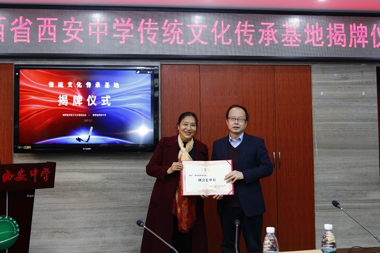 12月1日下午,陕西省传统文化发展促进会与陕西省西安中学共同成立的“传统文化传承基地”揭牌仪式在我校举行。