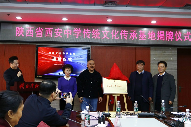 陕西省人大常委会原副主任邓理,陕西省教育厅体卫艺处处长樊治锋,陕西省西安中学党委书记、校长张克强,陕西省传统文化发展促进会会长、陕西广播电视台资深节目主持人陈爱美共同为“传统文化传承基地”揭牌。仪式由陕西省传统文化发展促进会副会长、陕西广播电视台著名节目主持人徐杰主持。