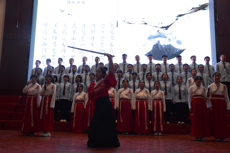 除此之外,《出师表》、《桃花源记》、《木兰辞》、《琵琶行》、《蜀道难》、《将进酒》等古典诗词诵读节目编排精致、诵读情感充沛,充分展现了学生的传统乐器、古典舞、剧目演绎等才能,感染了现场的观众。