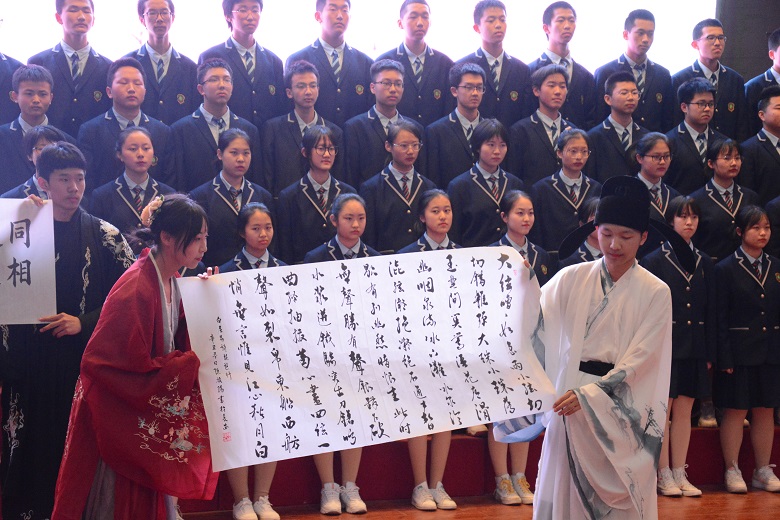 “轻轻地我走了,正如我轻轻地来;我轻轻的招手,作别西天的云彩。”本次比赛由高一理10班的抽选篇目《再别康桥》拉开序幕,学生们熟练而深情的背诵着徐志摩的名篇。随后一组苏轼词作为班级自选篇目,带领观众走进了这位伟大词人得意、失意、慎独、畅达 的一生。