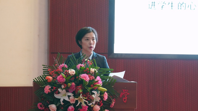 学生处副主任、心理教师安秀萍做了题为《关注心理,做蓬勃生长的教师》专题讲座。她用诙谐生动的语言分享了教师在工作中的遇到的问题和困惑,引发了在场教师的强烈共鸣。她从积极心理学着手,结合丰富生动的案例,介绍了健康与心理健康的标准,希望老师们加强心理保健,做好自我关怀,多维度积极提升自身的职业幸福感,做蓬勃向上的新时代教师。