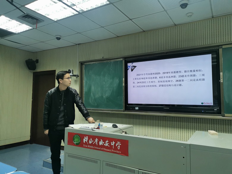 2022年3月1日上午,经开区通用技术学考复习备考研讨会在我校录播教室召开。会上,西安市通用技术教学能手,经开区兼职教研员赵连杰老师“从认真学习考试说明,严格把握考试要求、有讲有练,讲练结合、善用思维导图,厘清知识体系、掌控时间,独立思考、适应新高考改革,利用情景化教学、多鼓励,勤表扬、小心机会让你收获一波粉丝等七个方面进行了报告”,内容充实,结构合理,给每位老师很大的教学启发。接着我校通用技术学科李权老师对2021年的学考真题进行了深度剖析以及归纳总结了近三年的学考真题常考知识点。最后,每位参会教师进行了深入的讨论,分享了自己在复习过程中的一些经验。针对学考习题中的易错题,难题,老师们也进行了探讨。会后,老师们也将自己在平时教学中的一些想法以及经验总结进行了分享。