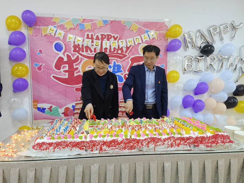 在领导、老师和餐厅员工的祝福声中,同学们集体许愿、吹蜡烛,分享生日蛋糕,一起吃长寿面。马云云主任、杨林副主任和敖宏铭副主任为同学们拍照留念,张吉友主任、杨高举副主任亲手为同学们端来热腾腾的长寿面。春浓花繁盛,温情育人心。甜甜的微笑挂在脸上,暖暖的情谊流淌心间。