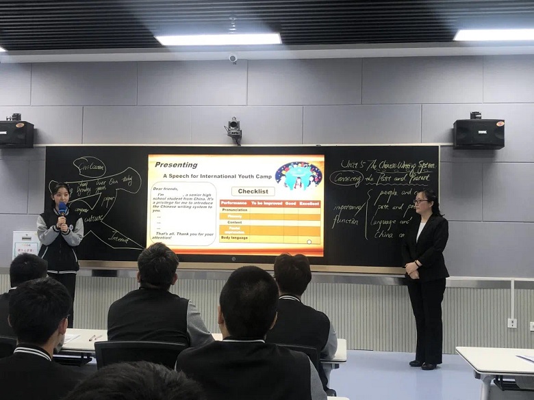 外国语学校马亚娜老师的课也同样精彩。郑璐老师认为马老师的课体现了产出导向法的教学理念,以make a speech作为导入和结束,首尾呼应,设计巧妙。另外,板书设计上颇有特色,用课堂要点组成了汉字“文”的形状,既呼应了文章主题,又能引发学生对汉字内涵的深度思考,设计十分精妙。此外,整节课中学生参与度很高,口语表达能力和文本分析能力都很强。体现了以学生为主体的教学理念。马素贞老师认为该节课体现了深度阅读的教学理念,对文本信息的深入挖掘,对学生理解的层层铺垫,以及对主题意义的深入思考都很值得我们学习。对汉字的发展及重要性,汉字与艺术、文化、传承、国家的关系方面都进行了细致而深入的思考。增加了学生们的文化自信和民族自信。随后,杨宁老师强调了这节课中所体现出的“用英语讲好中国故事”的学科教学要求,体现了英语学科素养的要求和学科思政理念的落实。