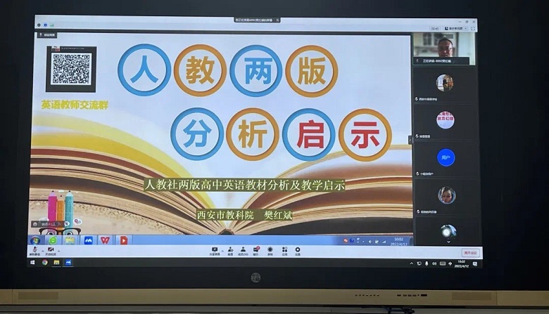 2022年4月12日上午,西安中学“名校+”高中英语新教材线上培训活动圆满举行。西安中学牵头,西安外国语学校、经开一中、经开二中、经开三中、泾河一中、博迪高中等七校全体高中英语老师参与了此次活动。本次活动以2019版高中英语新教材的试教活动为契机,提前进入新高考、新教材的研究,群策群力,大胆探索,勇于实践。力求更好地把握国家新课程方案与学科课程标准,了解英语学科新教材的编写理念、特点与主要变化,知悉新课标指导下的英语学科教学要求,切实将“双新”理念转化为教育教学实践,实现新旧教材的平稳过渡。