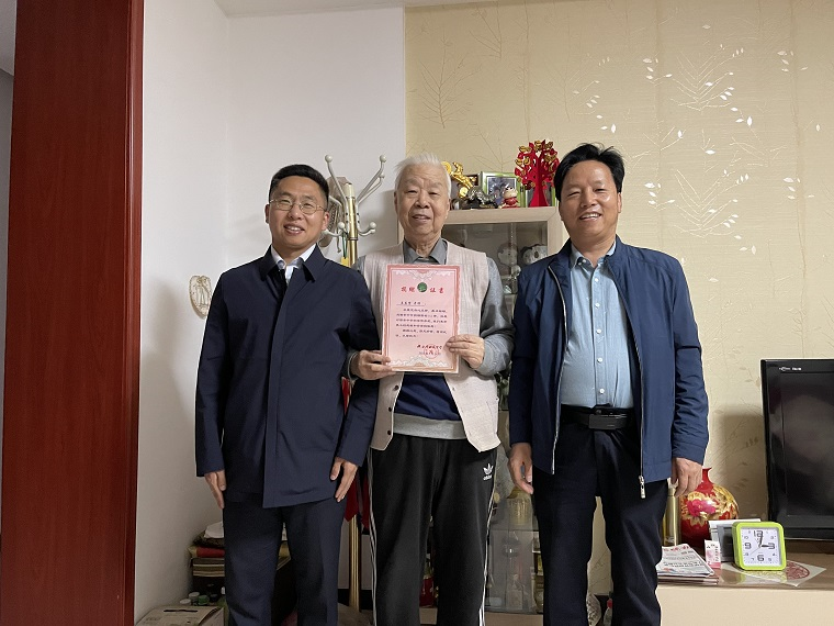 春风抚柳杏花开。4月14日下午,学校办公室主任黎建军、教学处主任吕铎前去探望吕应贤老师,并为吕老师颁发了图书捐赠证书。