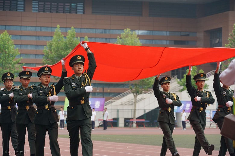 随着运动员方阵进入中央草坪站定,庄严的升旗仪式开始了,嘹亮的国歌响起来,全场肃静庄重的注目礼中,五星红旗升冉冉升起。