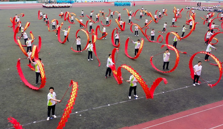 精彩的体育选项教学成果展示将大会的气氛再次推向高潮。成百人的方阵进行了健身操、啦啦操、武术操特色体育项目的精彩表演。万龙共舞,天光相映,一招一式,气震山河。刀光剑影,枪出如风。吞吐山河的威武霸气让观众席响起一阵阵欢呼。