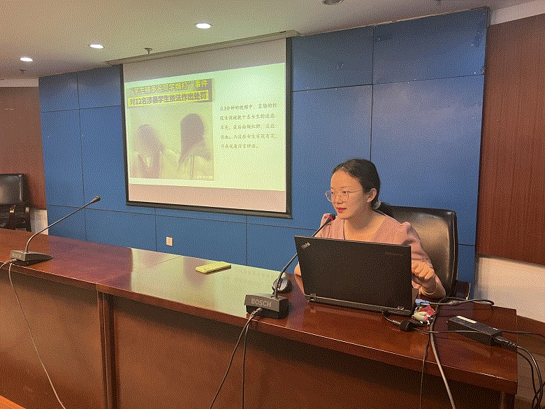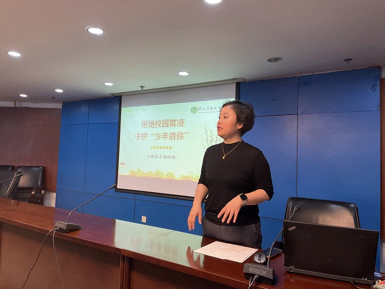 为预防校园欺凌事件发生,保障学生身心健康,提高学生的安全防范意识和自我保护能力,进一步构建平安和谐校园,5月6日下午,我校开展以“拒绝校园欺凌,守护’少年的你’”为主题的专题讲座。本次讲座学生处副主任安秀萍主持、心理教师张毓珂主讲,全校心理健康委员参与并聆听了讲座。