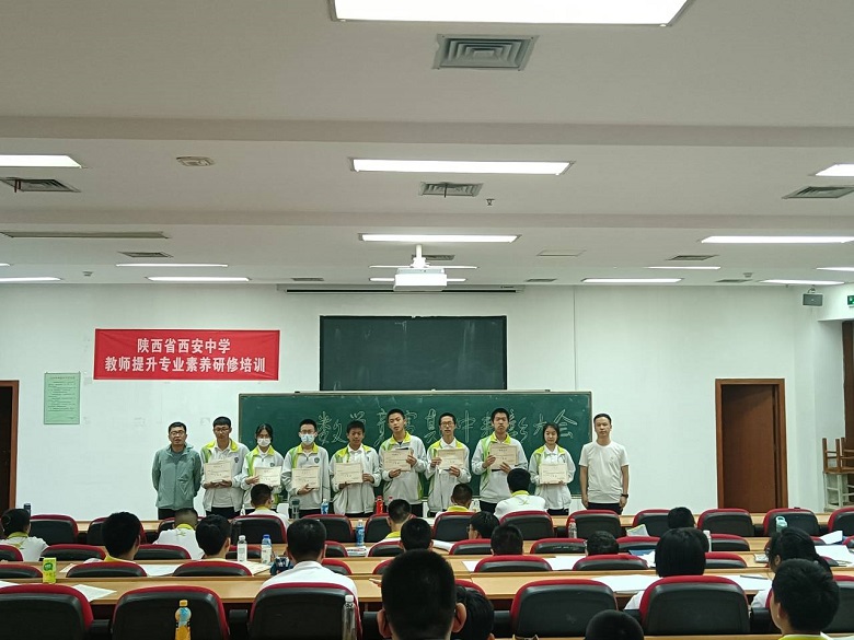 为激发学生学习数学的兴趣,鼓励同学们学好竞赛,我校分别于5月9日、10日晚举行高一、高二年级第二学期期中数学学科竞赛期中颁奖仪式。高一年级共表扬赵景浩等22名成绩优秀的同学。其中赵景浩、宋佩翰、曹李楠和李沐恒获得一等奖;高二年级共表扬杜智强等19名成绩优秀的同学。其中杜智强、胡睿昕、柳智信获得一等奖。教学处刘飞主任、杜薇主任,数学竞赛总教练高洁老师参加了此次大会。