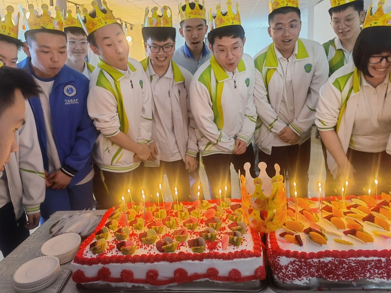 高考在即,为了给高三学子助力加油,5月23日下午,陕西省西安中学为5月和6月过生日的高三住校生举办了集体生日会。胡杰副校长、高三年级部敖宏铭副主任、郑欣副主任、航校办杨林副主任、后勤处杨高举副主任、航校指导员以及鸿金鹏集团工作人员陪伴大家共同庆生,少年们脸上是藏不住的惊喜与感动,大家难得的放松,享受这份温情。