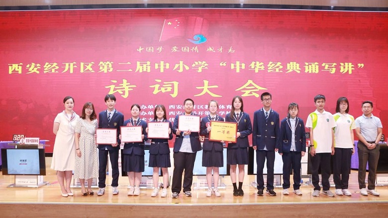 为了弘扬传承中华优秀传统文化、发掘经典诗词之美,加强中华文化在中小学生中的浸润、辐射作用,促进校园文化特色的多样性发展。经开区教育局于2021年5月23日在西安经开第二学校举办了经开区第二届 “中华经典诵写讲”诗词大会。