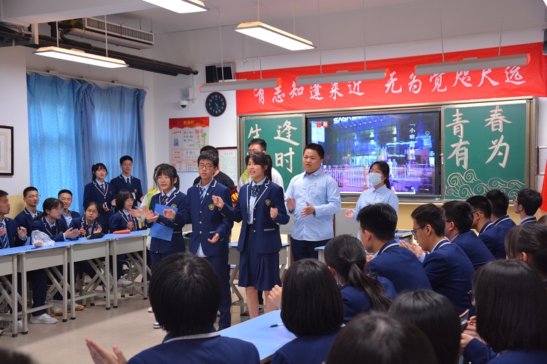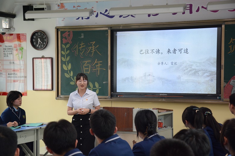 活动中,第一、第三支部认真部署、精心选拔、反复磨课,推出高苗、雷妮两位党员班主任进行了“班会思政”展示,他们积极挖掘思政主题班会的内容素材,探索组织方式,创建特色亮点,充分发挥班会的思政育人功能,彰显了党员班主任的思政素养。在班主任老师的带领下,同学们聚焦思政主题,采用观看视频、集体宣誓、诗朗诵、知识问答等丰富是形式,从不同角度展现了新时代青年学生的思想风貌。