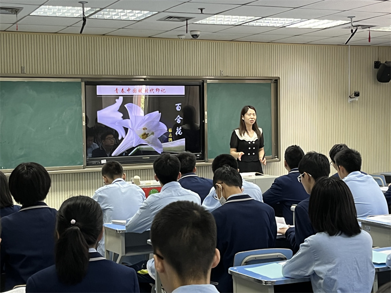 韩琳老师则带来了公开课——张洁的小说名篇《百合花》。提出问题“想把百合花送给谁?”引导学生展开情节、人物形象的分析,最终得出了题目与主题之间的关联。