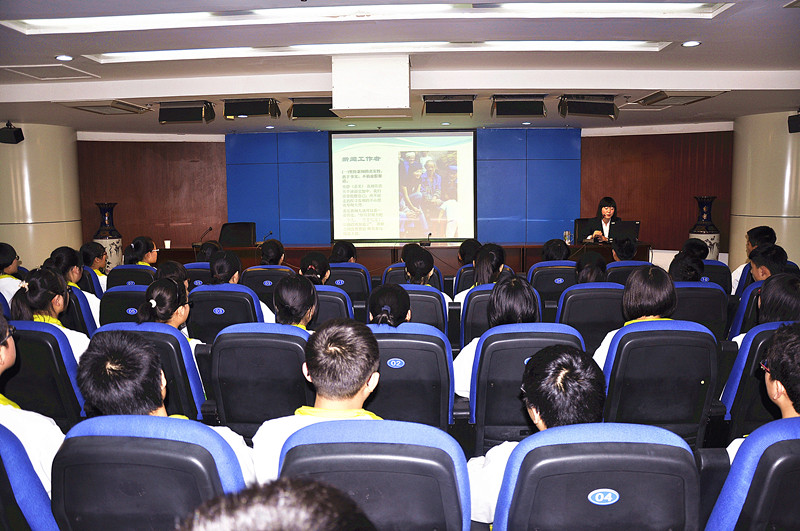 负责校电视台工作的杨洋老师,讲解了新闻的基础知识和录像采编软件的操作方法,使全体同学对新闻采访和后期采编有了基本的认识与了解。杨洋老师通过自身在大学期间参加电视台的经验,向学生们分享“用独特视角发现新闻”的理念。杨洋老师说:“记者要有敏锐的眼光,独特的视角,冷静的判断,力求新闻的真实性。”