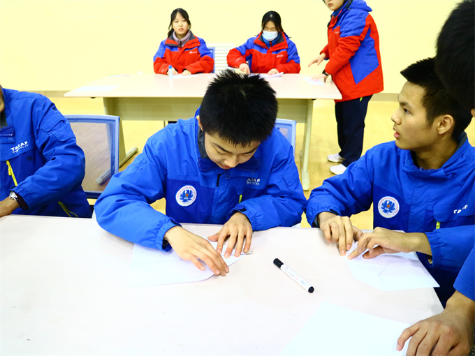 本次比赛三人为组,分为三个部分,首先,组内自行分工进行纸飞机的设计,制作,调试和投掷,每组纸飞机制作时间为15分钟;接着,纸飞机制作结束以后各组分别进行“远程直线距离项目”与“滞空时间项目”的比拼,每组各有两次投掷机会。由航十四,十五班的同学担任本次比赛裁判,认真负责,公平公正。