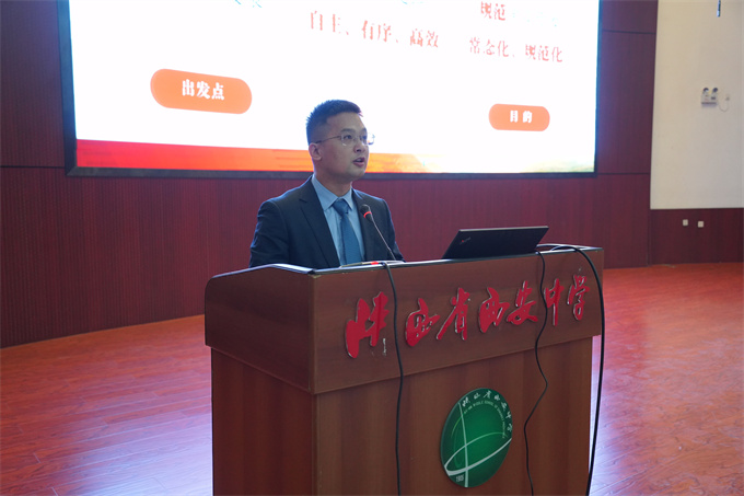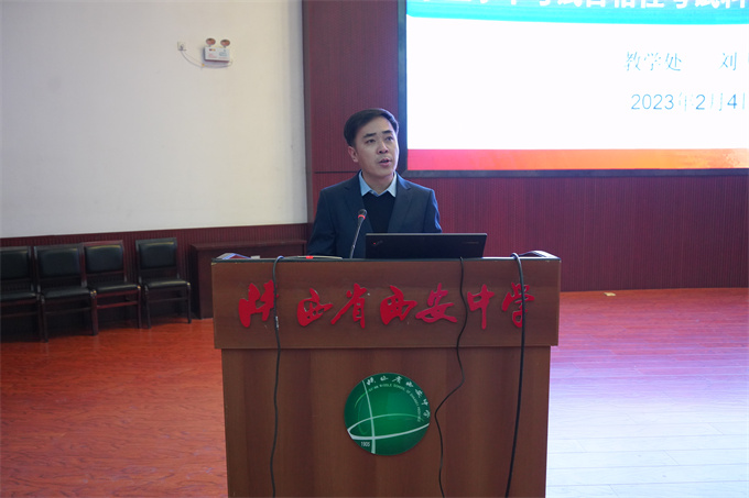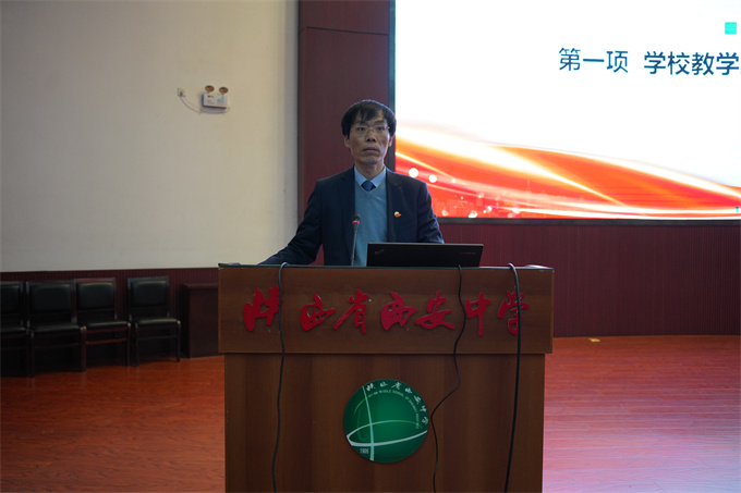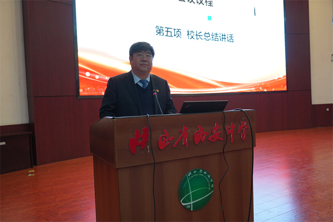 副校长薛党鹏首先从近两年所获得的荣誉,成功承办十四运部分赛事,发展特色教学,高质量推进“三个课堂”、完善人才培养方案、提升教师教学水平、提前做好新高考筹备等多个角度对前两年的教学工作进行了系统的总结,对取得的成绩进行了充分的肯定。其次进一步对目前的新形势进行分析,科学谋划未来两年教学工作的主要任务,为今后学校教学的发展指明了方向。