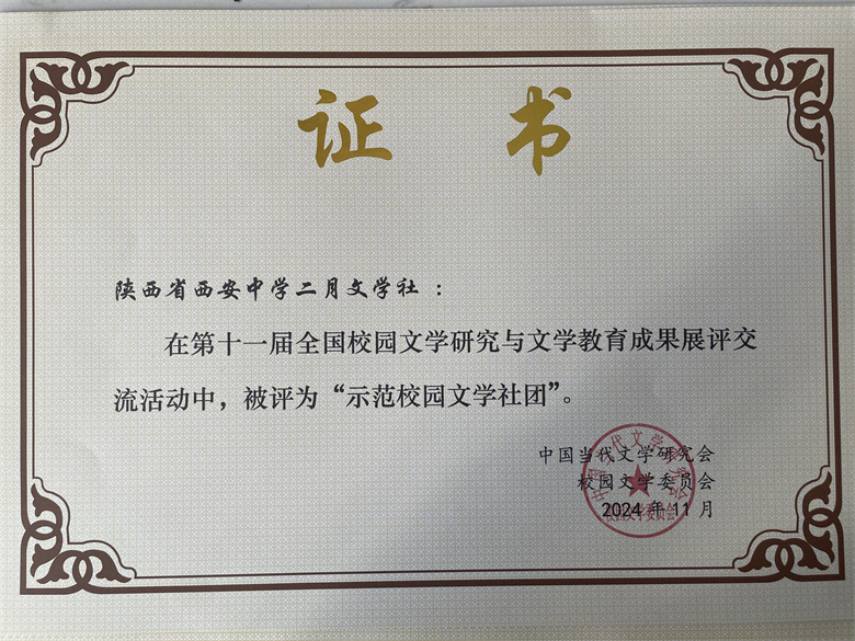 文学校园渐成青荫,青春萌芽芳华可待 ——我校“二月”文学社获得“示范校园文学社团”称号