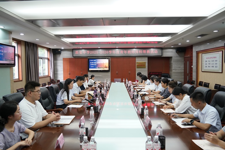 杨宁副主任首先宣读了本次拜师帮教结对名单,12 位骨干教师与新入职教师正式结成师徒,并宣读《西安中学青年教师培养导师制实施办法》,明确师徒双方责任和目标,包括听评课、竞赛、研讨、教案等内容,希望结对师徒能够优势互补,实现共同成长。