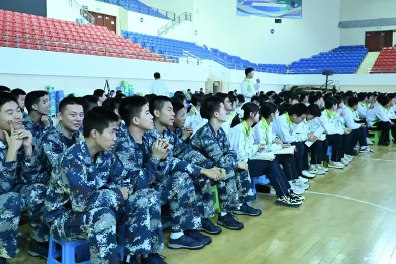 谭教授将自己的人生比作一部长篇励志小说,从六个层面展开叙述:童年时期的贫穷和苦难、少年时期的作家梦、小学教师时期的三重打击、研究生期间的传奇故事、博士期间的瞩目成就、他一生的追求信仰:事业、美、博爱。每个阶段都为在场师生分享了他的生命感言,并以戴望舒的诗歌《寻梦者》深入浅出地谈论自己的人生苦难和追求。他用“仰望天空,追逐梦想,脚踏实地,立志成才”来形容自己的奋斗历程,励志的故事,幽默风趣的语言感染了高一学生,时不时响起阵阵掌声,燃起现场同学们的热情。